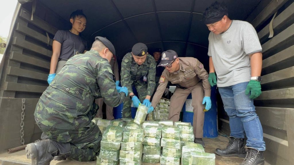วันที่ 8มีค68 พล.ต.ท.กฤตธาพล ยี่สาคร ผบช.ภ.5 พล.ต.กิดากร จันทรา ผบ.กกล.ผาเมือง มอบหมายให้ ชุดสืบสวนภาค 5, ชุดสืบสวน ภ.จว.เชียงราย และ ฉก.ทัพเจ้าตาก สกัดจับรถ 3 คัน ผู้ต้องหา 7 คน บนดอยแม่สลองและบริเวณด่าน3แยกอีก้อ อ.แม่ฟ้าหลวง จ.เชียงราย ทั้งนี้ 1 ในรถของกลาง เป็นรถ 6 ล้อ ดัดแปลงให้มีสีและลักษณะคล้ายกับรถทหาร ติดป้ายตรากงจักรปลอม ขนถังน้ำมันขนาด 200 ลิตร 17 ถัง มี 15 ถังที่ข้างในซุกไอซ์น้ำหนักถังละประมาณ 88 กก. รวมไอซ์ทั้งหมดหนัก 1,320 กก. ทั้งนี้การจับกุมดังกล่าวเป็นการขยายผลจากการจับกุมเครือข่าย “เสี่ยจิว” ที่เคยขนไอซ์หนัก 1,400 กก. เมื่อปลายปี 2567