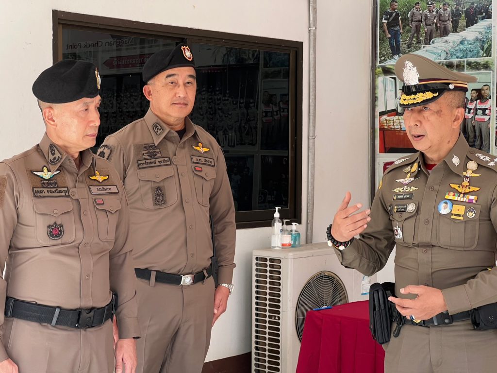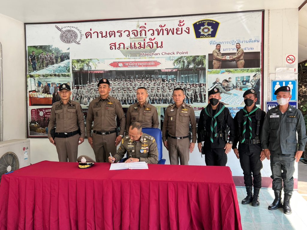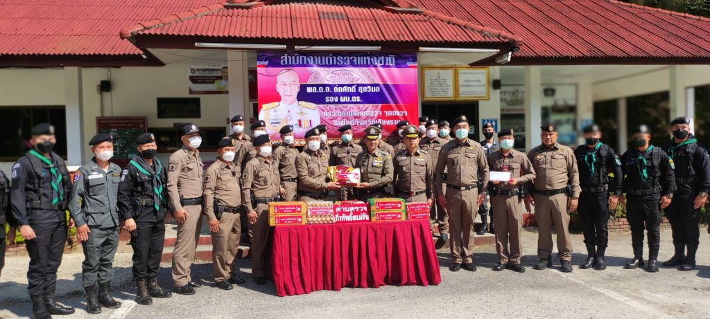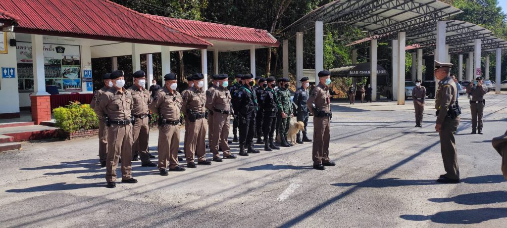 วันที่ 8 ม.ค.65 เวลา 12.30 น. พล.ต.อ.ต่อศักดิ์ สุขวิมล รอง ผบ.ตร. พร้อมคณะฯ ตรวจเยี่ยมด่านตรวจกิ่วทัพยั้ง สภ.แม่จัน โดยมี พล.ต.ต.ดุลเดชา อาชวะสมิตระกูล ผบก.ภ.จว.เชียงราย ,พ.ต.อ.ทรรศ์ธนสรณ์ จุฑารัตน์ ผกก.สภ.แม่จัน ให้การต้อนรับ พล.ต.อ.ต่อศักดิ์ สุขวิมล รอง ผบ.ตร. ได้มอบนโยบายและข้อสั่งการ มอบสิ่งของเพื่อสร้างขวัญกำลังใจในการปฎิบัติงาน ให้แก่ข้าราชการเจ้าหน้าที่ ตำรวจ สภ.แม่จัน ,ตชด.327 , ทหารพราน 31 ในการรักษาความปลอดภัยในชีวิตทรัพย์ สินของประชาชน และอำนวยความสะดวกการจราจรนักท่องเที่ยว ณ ลานหน้า ด่านตรวจกิ่วทัพยั้ง สภ.แม่จัน