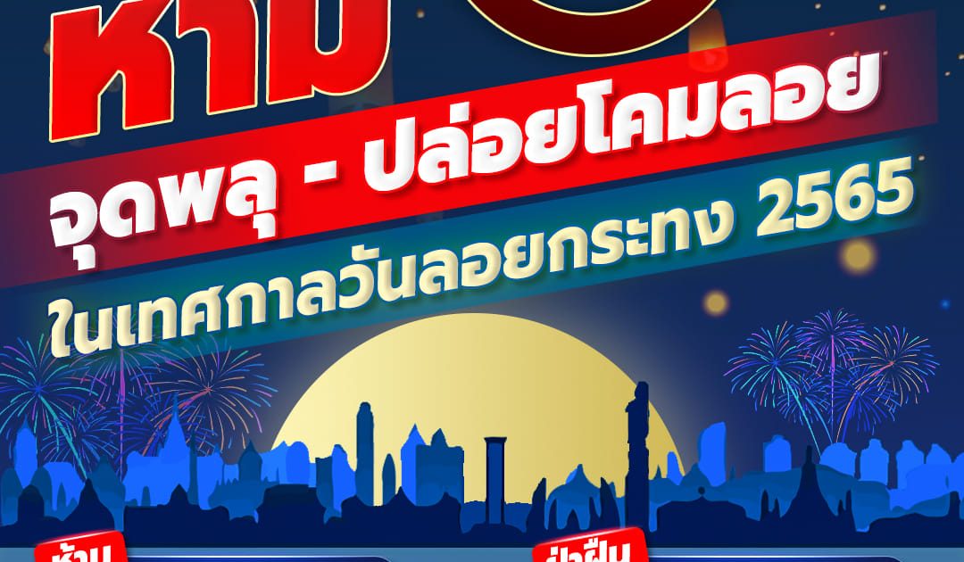 ประชาสัมพันธ์ข้อห้าม ข้อควรระวัง ห้ามจุดพลุ – ปล่อยโคมไฟในเทศกาลวันลอยกระทง 2565