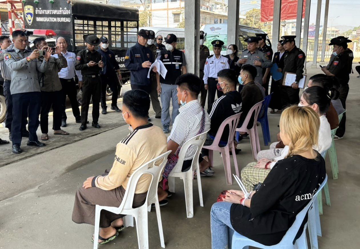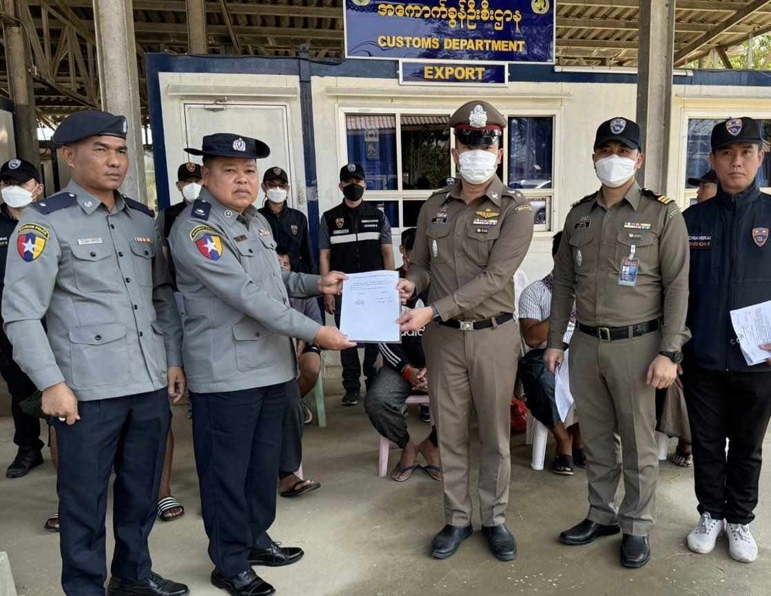 เมื่อวันที่ 20 ก.พ.67 พ.ต.อ.สุรศักดิ์ เทียนทอง ผกก.ตม.เชียงราย รับแจ้งจาก ตม.ท่าขี้เหล็ก ฝั่งเมียนมา จะส่งผู้ต้องหาพ้นโทษหลบหนีเข้าเมือง 9 คนกลับไทย จึงสั่งให้ พ.ต.ท.มนตรี อินเปรี้ยว รอง ผกก.ตม.เชียงราย ประสานการรับตัวผ่านด่านสะพานข้ามแม่น้ำสาย แห่งที่ 2 จากการตรวจสอบข้อมูลพบมีผู้ต้องหาหนีหมายจับคดีร่วมกันฆ่าผู้อื่น 4 คน และมีอาวุธปืนลูกระเบิดไว้ในครอบครอง ร่วมกันพยายามฆ่าเจ้าหน้าที่ 1 คน หลบหนีไปอยู่ท่าขี้เหล็ก 5 ปี จึงประสาน พ.ต.อ.เกียรติศักดิ์ จิตรประสาร ผกก.สภ.แม่จันพ.ต.อ.ศันย์ชัย พานิชกุล ผกก.สภ.แม่ อาย จ.เชียงใหม่ ร่วมจับกุมตัว