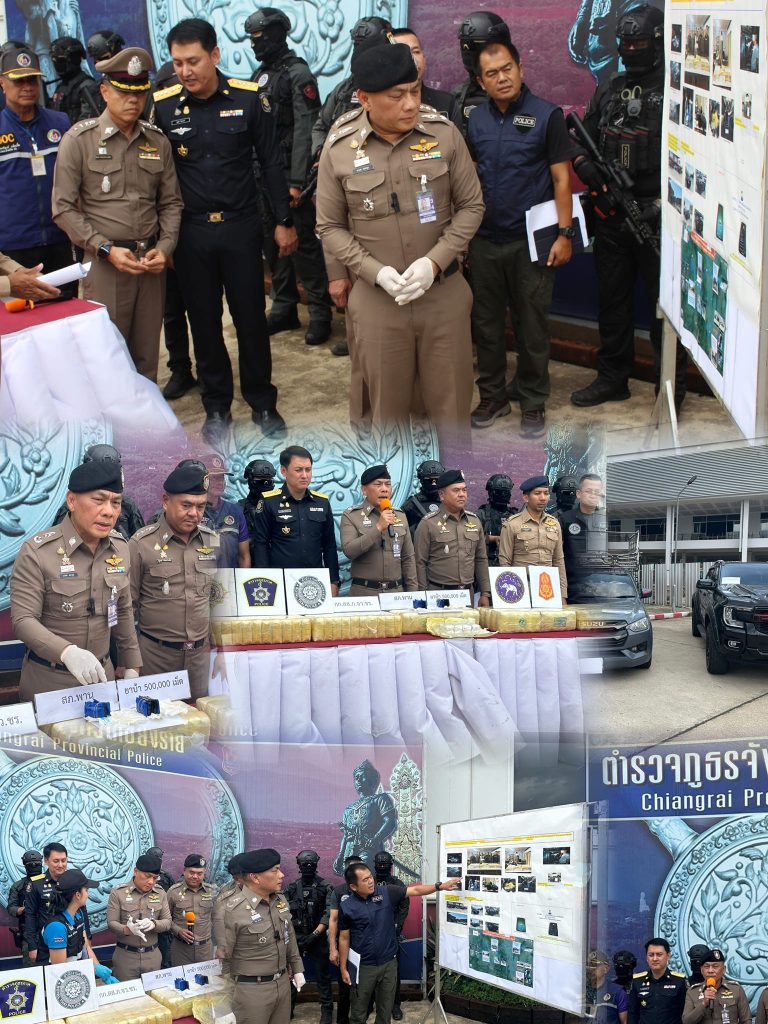 พล.ต.ต.มานพ เสนากูล ผบก.ภ.จว.เชียงราย, พร้อมหน่วยงานร่วมสนับสนุน แถลงข่าวผลการจับกุมยาบ้าจำนวน 500,000 เม็ด พร้อมของกลางรถยนต์กระบะ จำนวน 2 คัน โดยการเป็นผลการปฏิบัติของ สภ.พาน จ.เชียงราย ร่วมกับชุดสืบสวน ภ.จว.เชียงราย ณ ลานหน้า ภ.จว.เชียงราย อ.เมืองเชียงราย จ.เชียงราย
