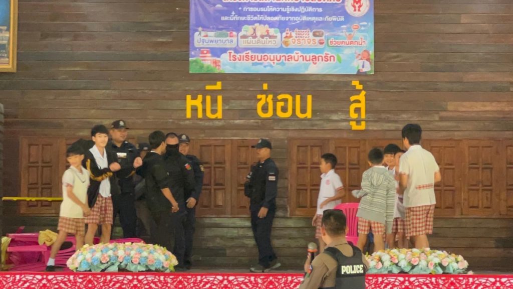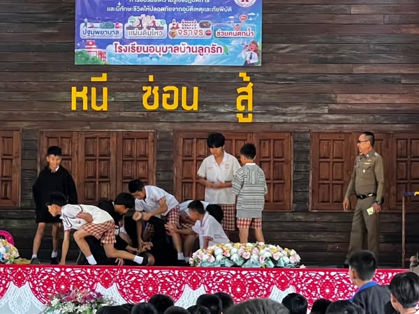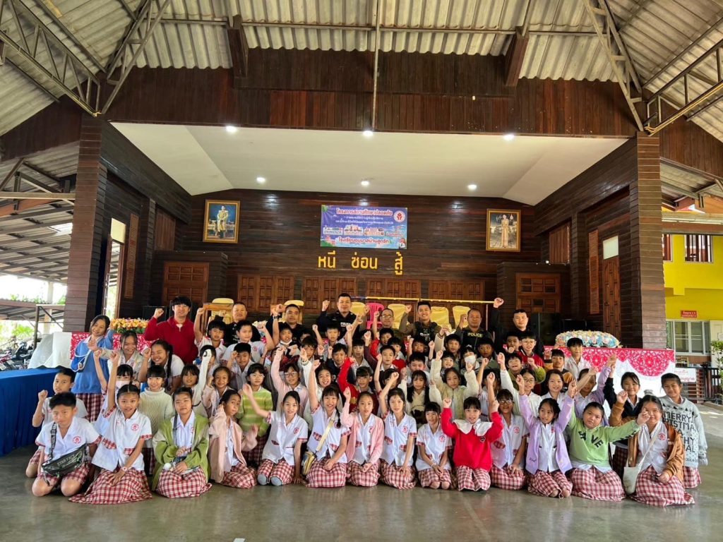 สายตรวจ 191 ชป.2 สภ.แม่จัน ร่วมเป็นวิทยากร บรรยายให้ความรู้เกี่ยวกับการ (หนี ซ่อน สู้) เพื่อให้ครู บุคลากร และนักเรียน มีความรู้ความเข้าใจ ตั้งสติ และแก้ไขสถานการณ์ได้ ณ โรงเรียนอนุบาลบ้านลูกรัก ม.6 ต.แม่จันฯ