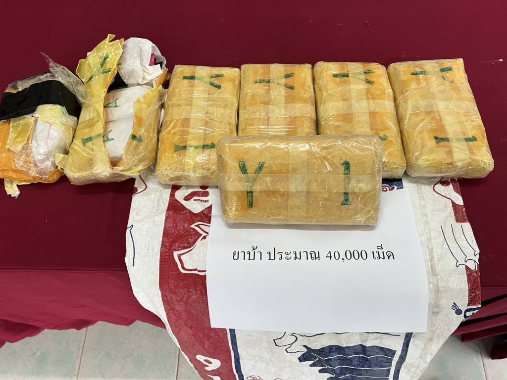 ตรวจยึดยาเสพติด(ยาบ้า) จำนวนประมาณ 40,000 เม็ด ในถุงกระสอบอาหารสัตว์ ซึ่งถูกโยนทิ้งไว้พงหญ้าข้างทางก่อนถึงด่านตรวจฯ
