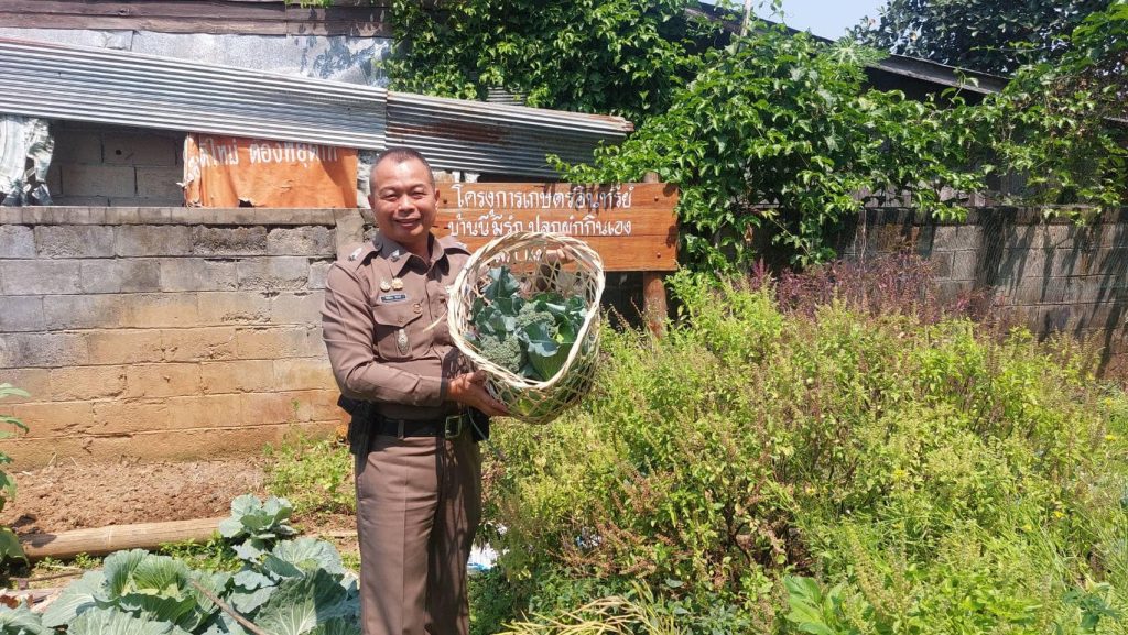พร้อมทั้ง ได้แบ่งปันผักสวนครัว ที่ได้ผลผลิตมาจาก โครงการบ้านนี้มีรักปลูกผักกินเอง สภ.แม่จัน ให้กับคณะครู และนักเรียน เพื่อนำไปประกอบอาหารลดค่าใช้จ่ายในครัวเรือน ณ โรงเรียนแม่คี – หนองอ้อ