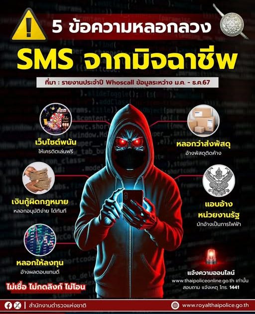ข้อความประเภทนี้มักแนบลิ้งก์ จูงใจด้วยข้อความชวนให้ตกใจ สงสัย อยากลุ้น อยากได้ เมื่อเผลอกดลิงก์ จะลวงให้แชต หว่านล้อมหลอกล่อให้โอนเงินให้ หรือให้ร่วมกิจกรรมต่าง ๆ ท้ายที่สุด มิจฯ จะขโมยเงินในบัญชี ขโมยข้อมูล