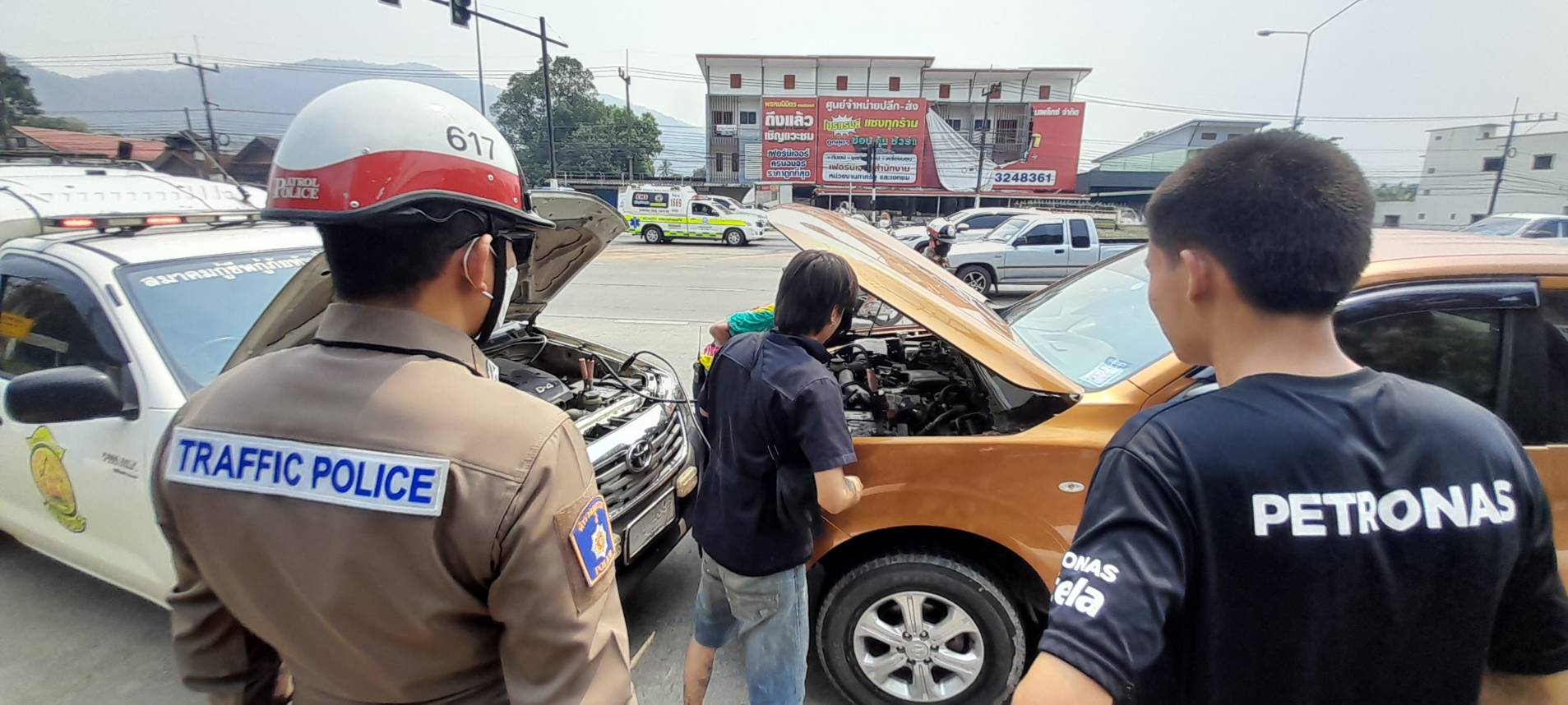 วันนี้ 24 เมษายน 2567 เวลา 14.15 น. ร.ต.อ.วิรัตน์ ยะบึง รอง สว.จร.สภ.แม่จัน ปฏิบัติหน้าที่นายร้อยตำรวจเวรจราจร (60) พร้อมด้วย ชุดจราจร สภ.แม่จัน จ.เชียงราย ให้ความช่วยเหลือประชาชน รถยนต์สตาร์ทไม่ติด ที่บริเวณแยกไฟแดงแม่อายใต้ ถนนพหลโยธิน ต.แม่จัน ได้ให้การช่วยเหลือประชาชนที่ได้มาติดต่อขอความช่วยเหลือที่ เนื่องจากรถยนต์สตาร์ทไม่ติด เพราะกระแสไฟในแบตเตอรี่หมด จึงได้ประสานกู้ภัยทัพยั้ง มาทำการพ่วงแบตเตอรี่กับรถยนต์คันดังกล่าว จนสามารถใช้การได้ตามปกติ
