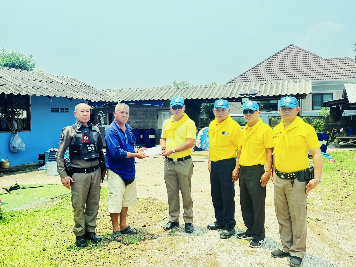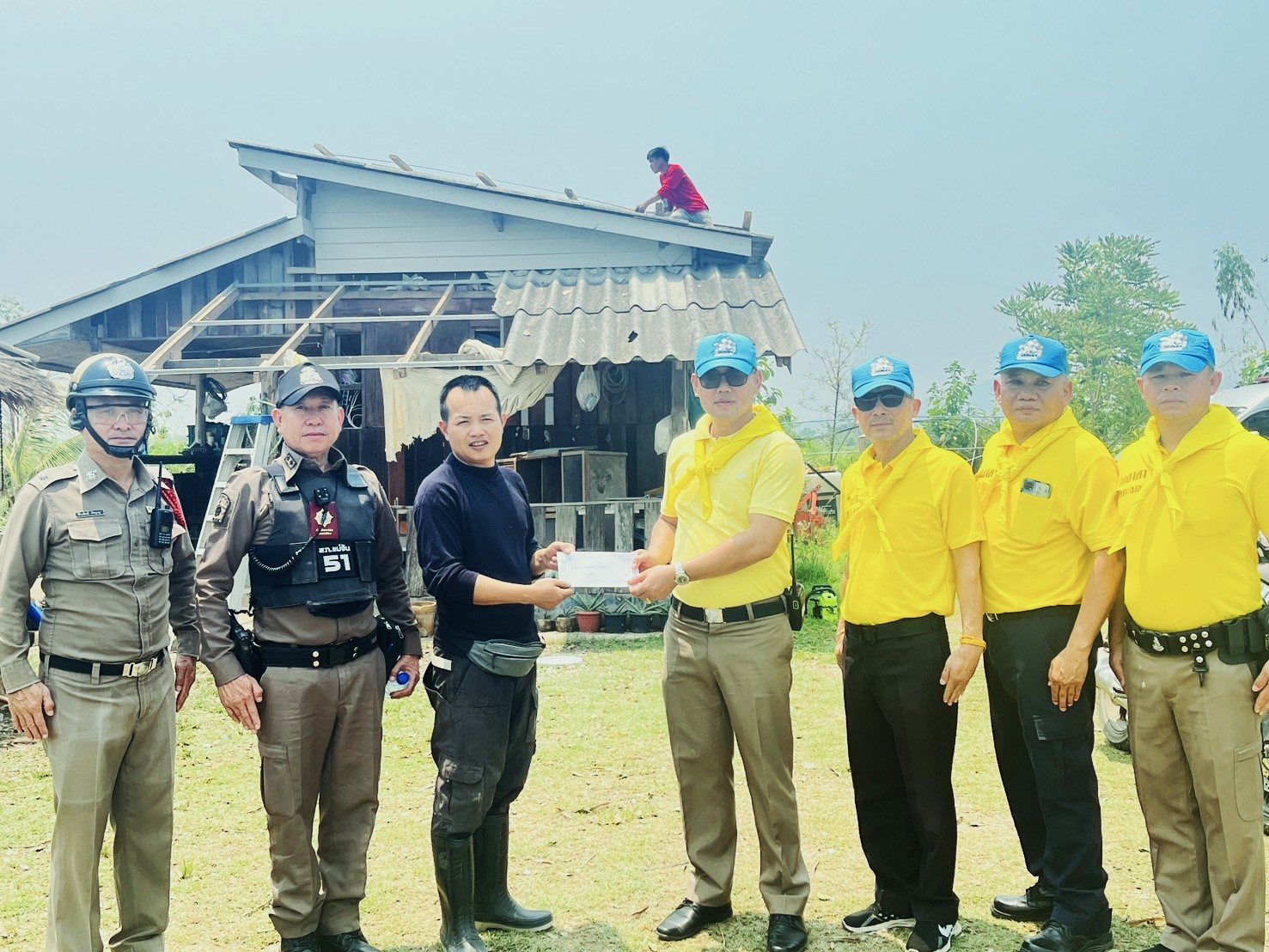 พ.ต.อ.เกียรติศักดิ์ จิตรประสาร ผกก.สภ.แม่จัน จ.เชียงราย พร้อมด้วย ร.ต.ท.ขจวน ราชลำ รอง สวป.สภ.แม่จัน จ.เชียงราย เจ้าหน้าที่ตู้ยามสันทราย พร้อมชุดจิตอาสาชุดปฏิบัติการที่ 4 ได้ร่วมกันลงพื้นที่ สำรวจเเละให้กำลังใจ ผู้ได้รับผลกระทบจากเหตุวาตภัยในพื้นที่ตำบลสันทราย และบ้านข้าราชการตำรวจในสังกัด สภ.แม่จัน จ.เชียงราย ที่ได้รับผลกระทบจากภัยธรรมชาติและได้มอบเงินช่วยเหลือในเบื้องต้น เพื่อเป็นขวัญกำลังใจ และซ่อมแซมส่วนที่เสียหายต่อไป