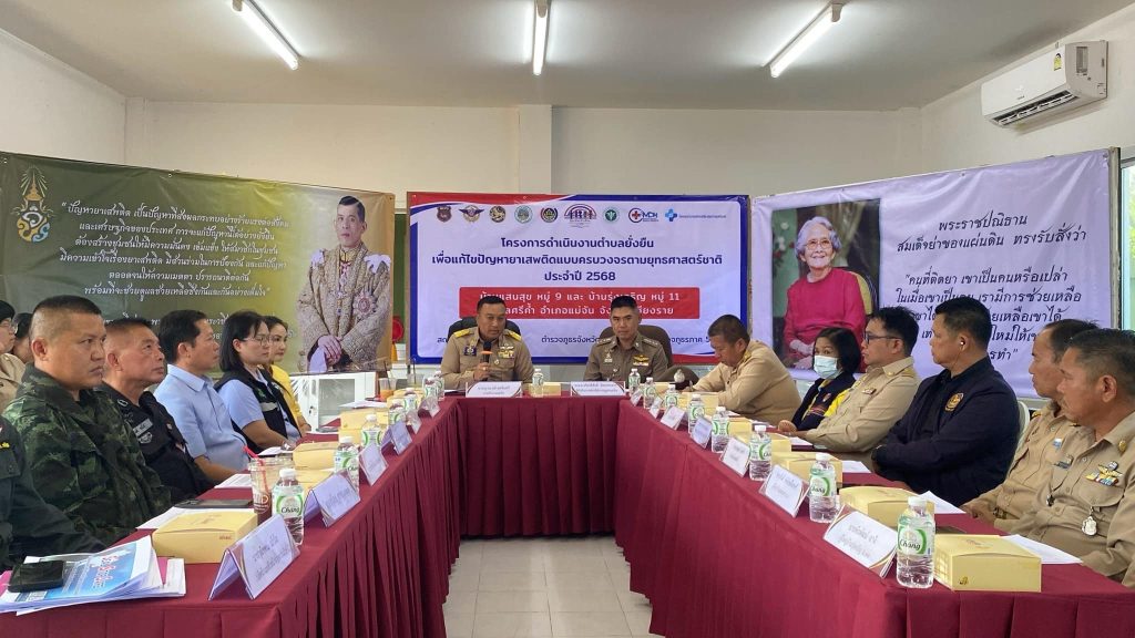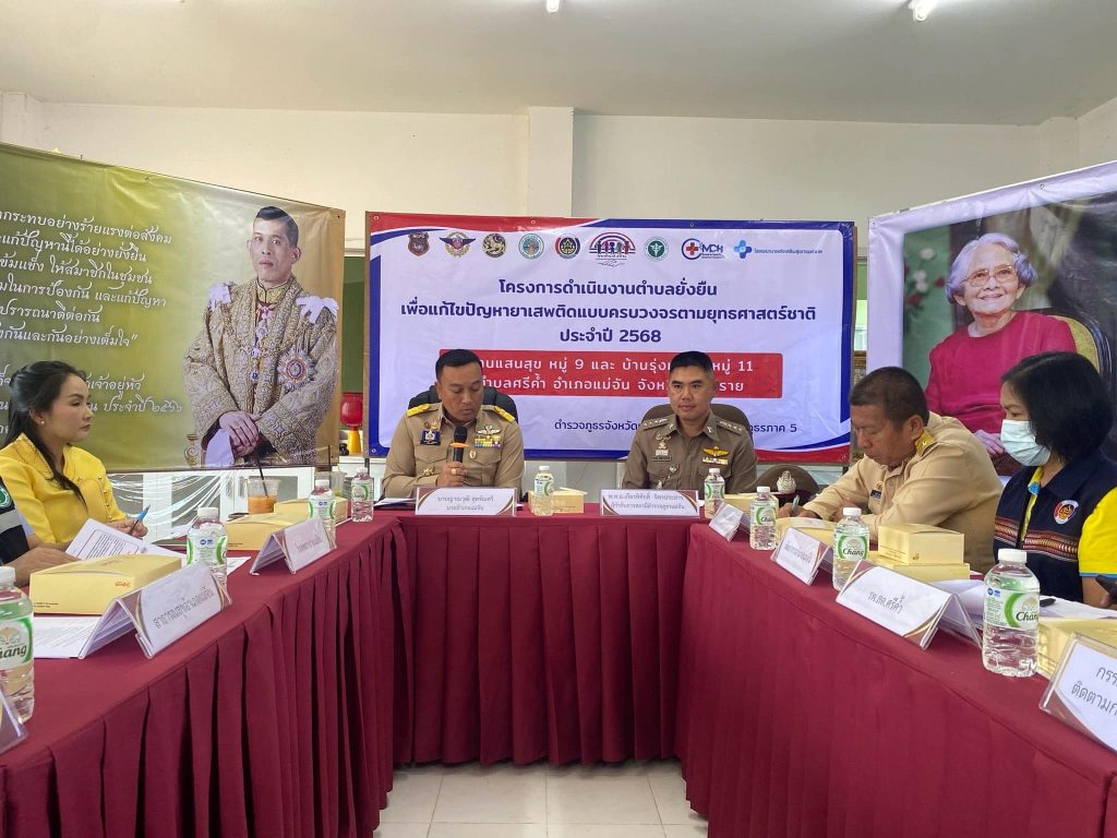 วันจันทร์ ที่ 10 มี.ค. 68 เวลา 13.00 น. สภ.แม่จัน ได้จัดพิธีเปิดโครงการตำบลยั่งยืน เพื่อแก้ไขปัญหายาเสพติด แบบครบวงจรตามยุทธศาสตร์ชาติ บ้านแสนสุข ม.9 และบ้านรุ่งเจริญ ม.11 ต.ศรีค้ำ อ.แม่จัน จ.เชียงราย โดยมี • นายญาณวุฒิ สุดพิมศรี นายอำเภอแม่จัน เป็นประธานในพิธี