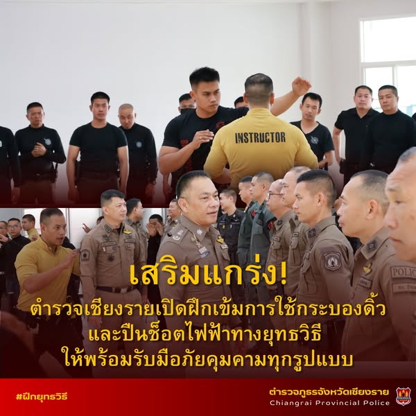 สภ.แม่จัน ส่งข้าราชการตำรวจในสังกัด เสริมแกร่ง! ฝึกเข้ม การใช้กระบองดิ้วและปืนช็อตไฟฟ้าทาง ยุทธวิธี