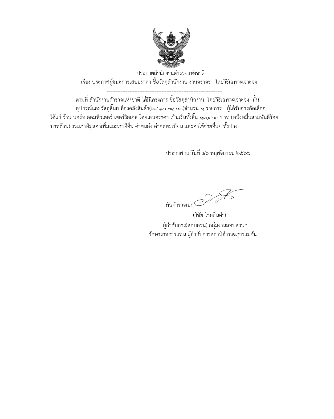 ประกาศผู้ชนะการเสนอราคา จัดจ้างพิมพ์แบบพิมพ์โรงพิมพ์ตำรวจ