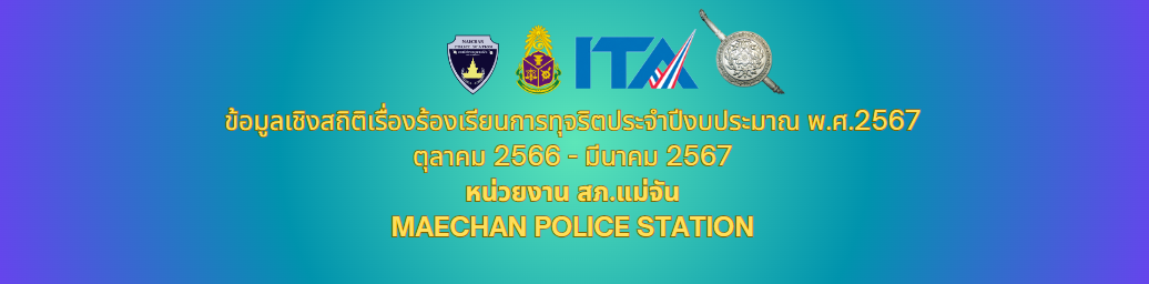 ❶ รายงานสถิติเรื่องร้องเรียนการทุจริต ประจำปี 2567 สภ.แม่จัน ในรูปแบบไฟล์ PDF